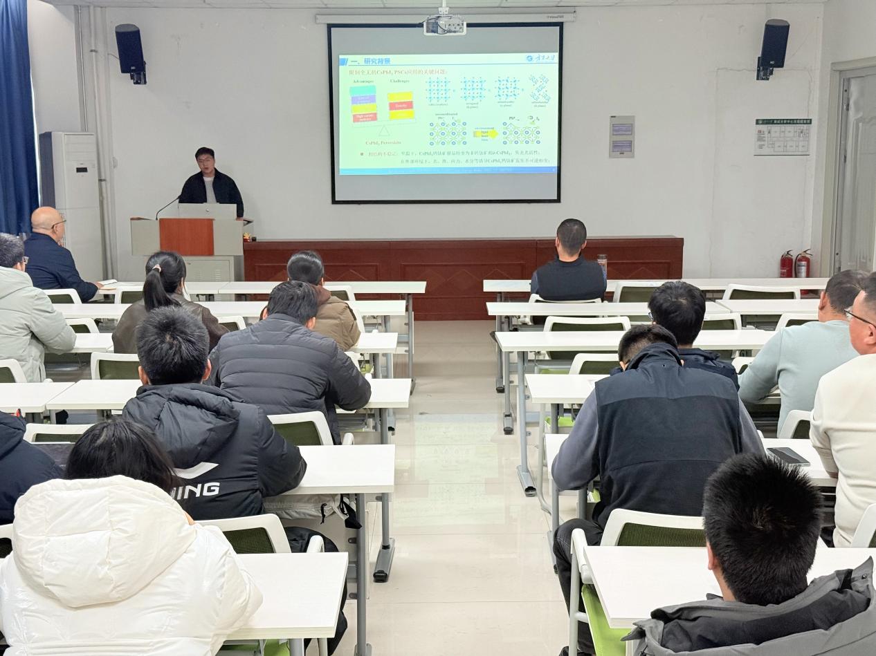 张啟先以“‘化繁为简’:从钙钛矿太阳能电池研究中精准定位项目题目”为题,介绍了自己的研究背景与成果;通过自身申请基金的经验和体会,以“想好要做什么事情?有没有人做?能不能做?创新点在哪儿?”四个问题为导引,着重分享了题目对于基金申请的重要性以及如何通过化繁为简的思路凝练优质题目,相关内容对与会教师具有重要启发意义。