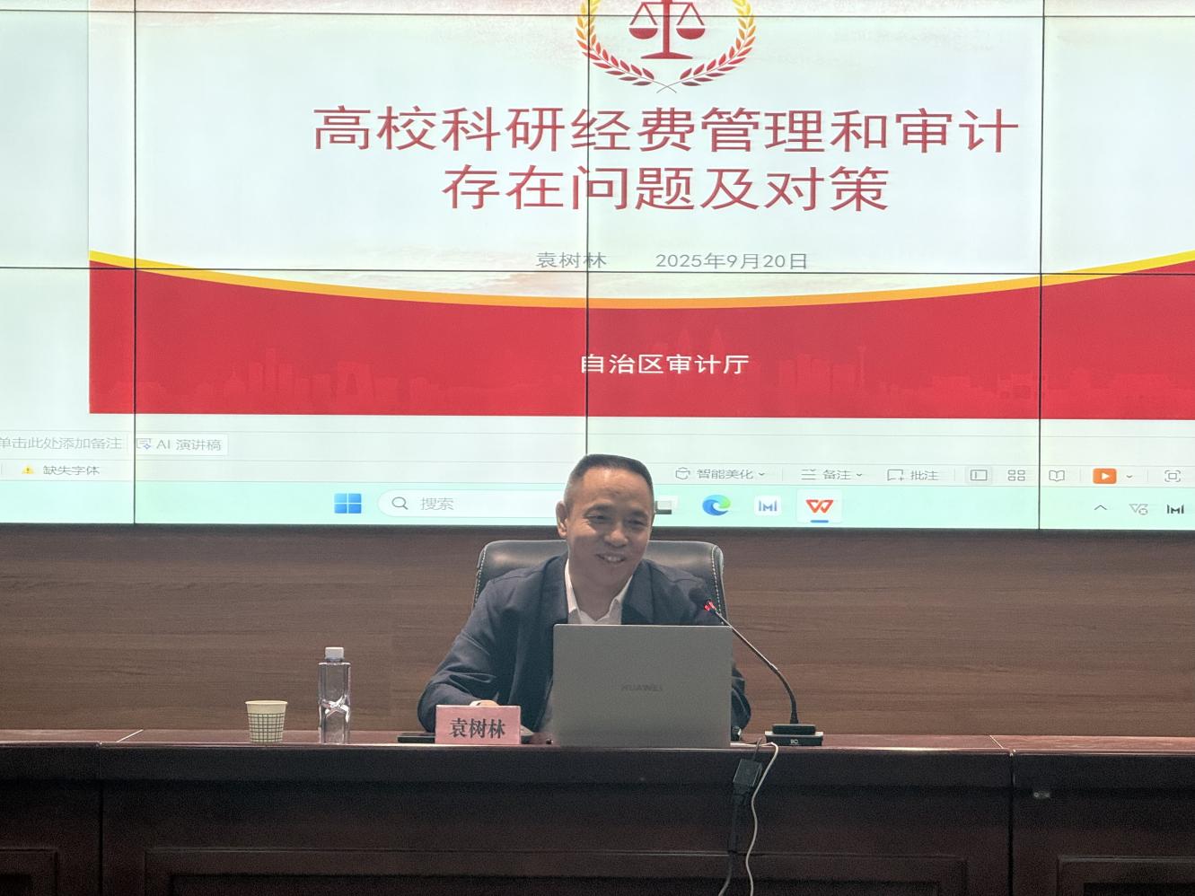 袁树林围绕我区高校科研经费投入规模及现状、高校科研经费管理及使用方法、高校科研经费审计方法、高校科研经费审计存在的问题、原因及对策、高校科研升级常见问题及案例五个方面,系统深入地阐述了高校科研经费管理的核心要点与实践规范,为威尼斯人澳门官网